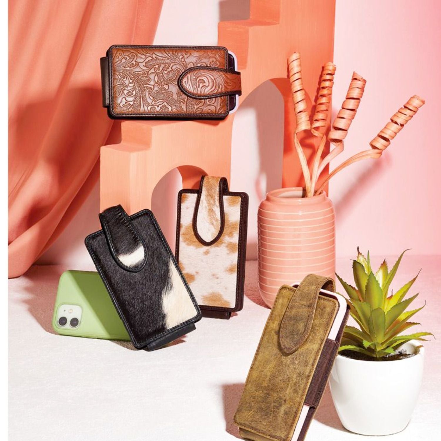 Carry your phone in style with this versatile cell phone case. This attractive case has a magnetic top flap and belt loop to keep your phone protected and secure. **Hair-On hides are natural and each comes with its own unique characteristics. leathers are unique, natural and derive from a variety of animal hides colors and patterns vary.