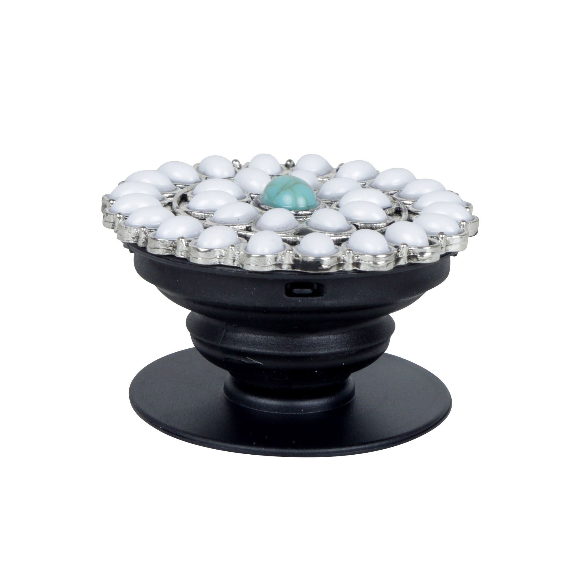 Get 360 degree free rotation pop socket that will work for every phone and hold it in a solid grip. White and turquoise stones set in a silver setting provide a beautiful and unique look! Comes with a 3M sticker that can be attached to your cell phone or tablet tightly making sure your device is secure.