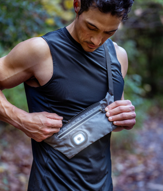Night Scope Sling Bag with Reflective Zippers & Rechargeable LED Light