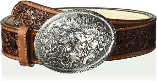 Ariat Womens Western Filigree Rhinestone Buckle Embossed Leather Belt