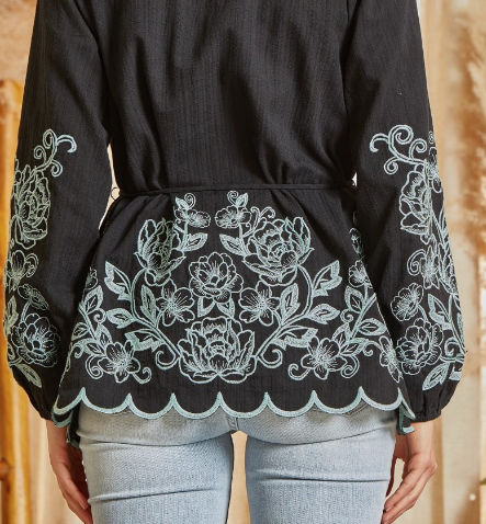 Savanna Jane Women's Blouse with Embroidery, Black