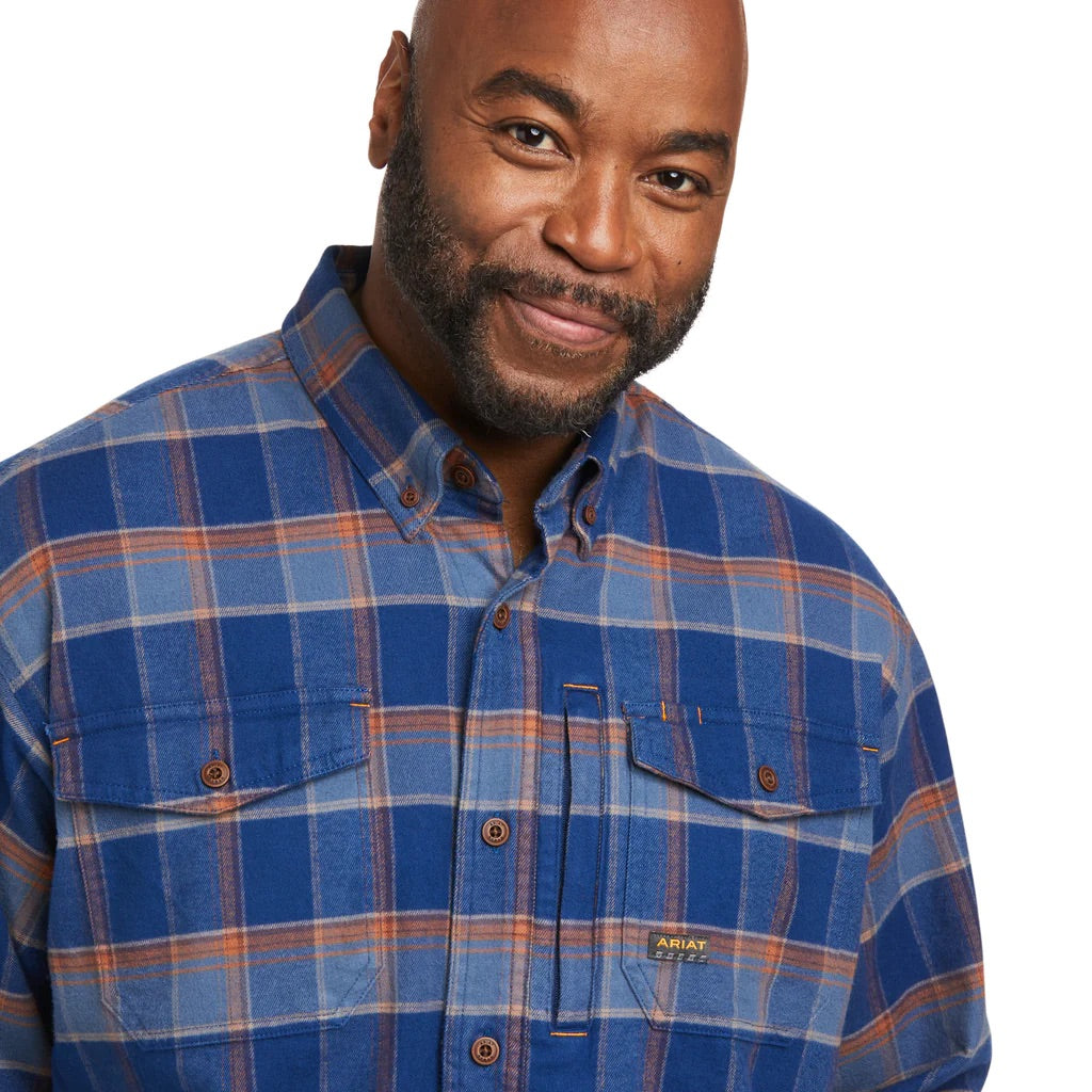 Ariat Mens Rebar Flannel Durastretch Workshirt Blue Depths Plaid