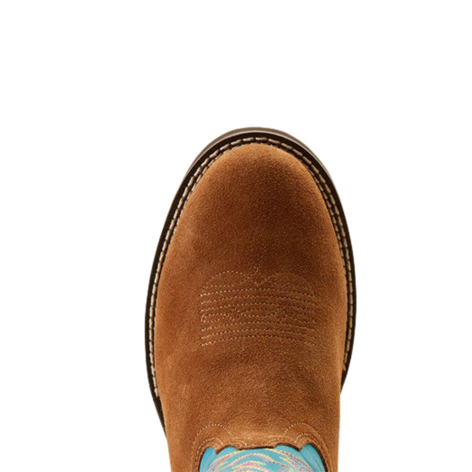 Ariat Womens Elko Leather Western Boot, Chestnut Suede / Basin Blue