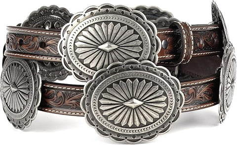 Ariat Womens Large Conchos Floral Tooled Leather Belt