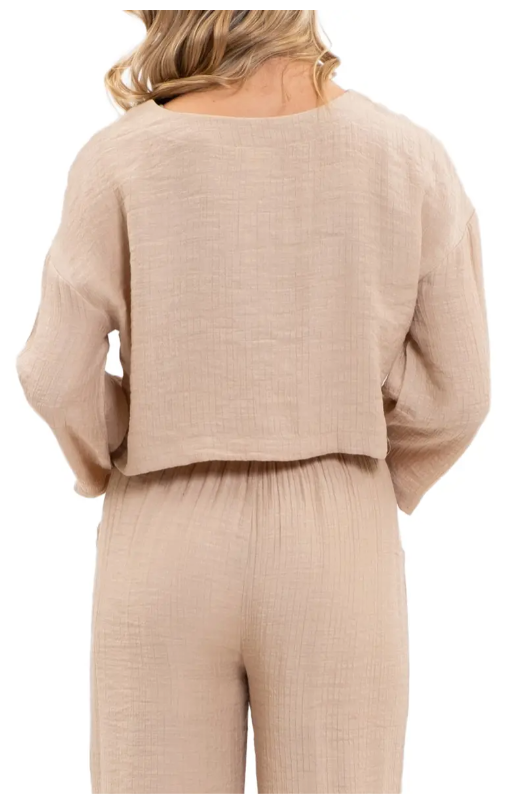 A cropped hem freshens up the look of this long-sleeve top with a crinkle texture for effortless style.