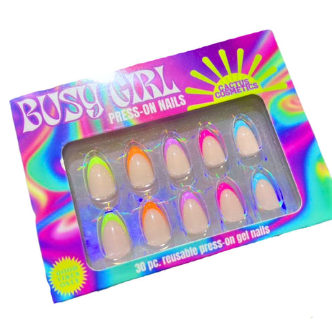 Cactus Cosmetics Busy Girl Reusable Press-On Gel Nails, 30 Pieces, Neon Moon