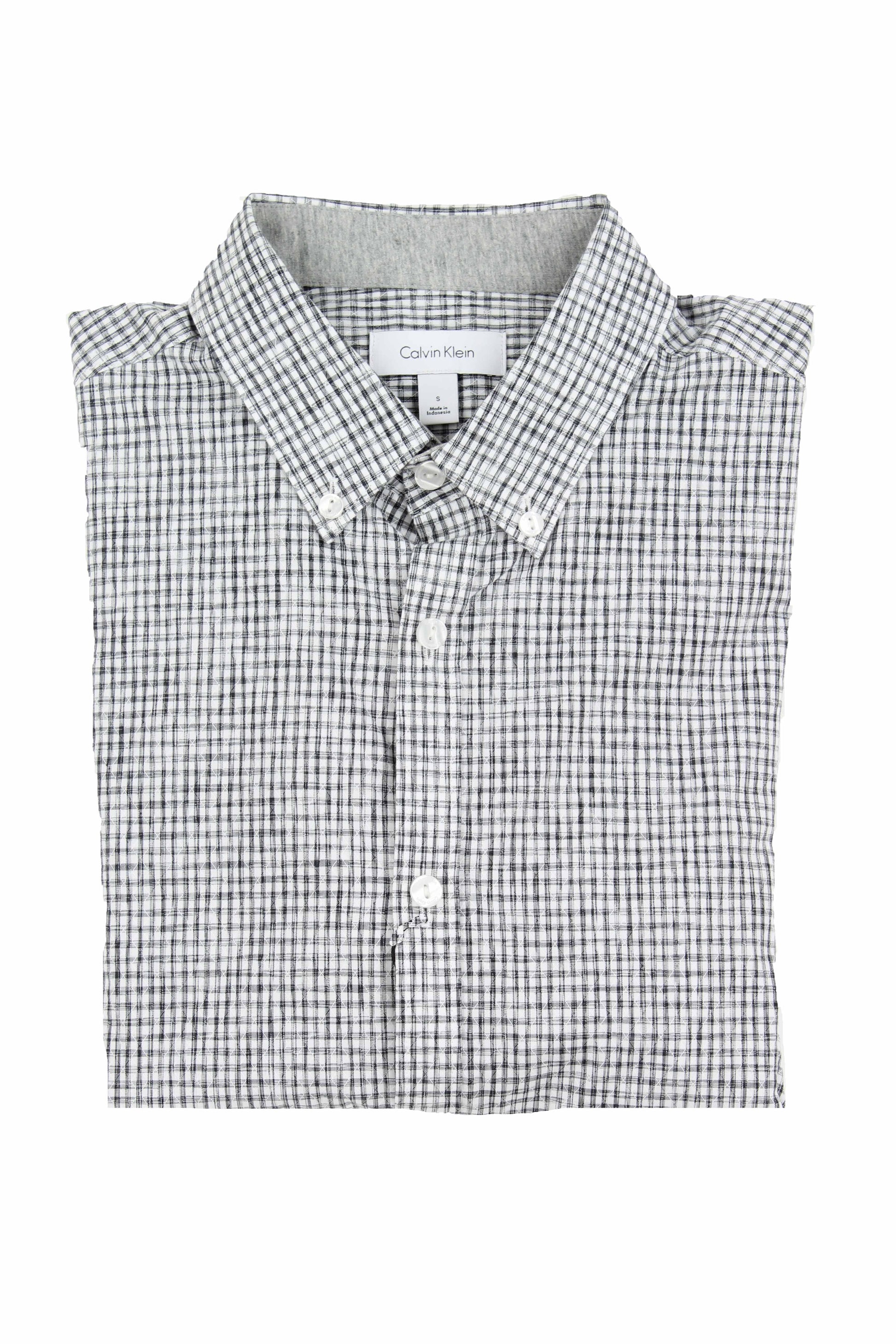 Calvin Klein Mens Dobby Long Sleeve Dress Shirt (Black/White Mini Plaid, S)