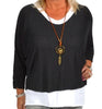This beautiful top comes with two pieces for a fun layered look, plus the necklace! Tunic-length tank underneath, long sleeve overlay.