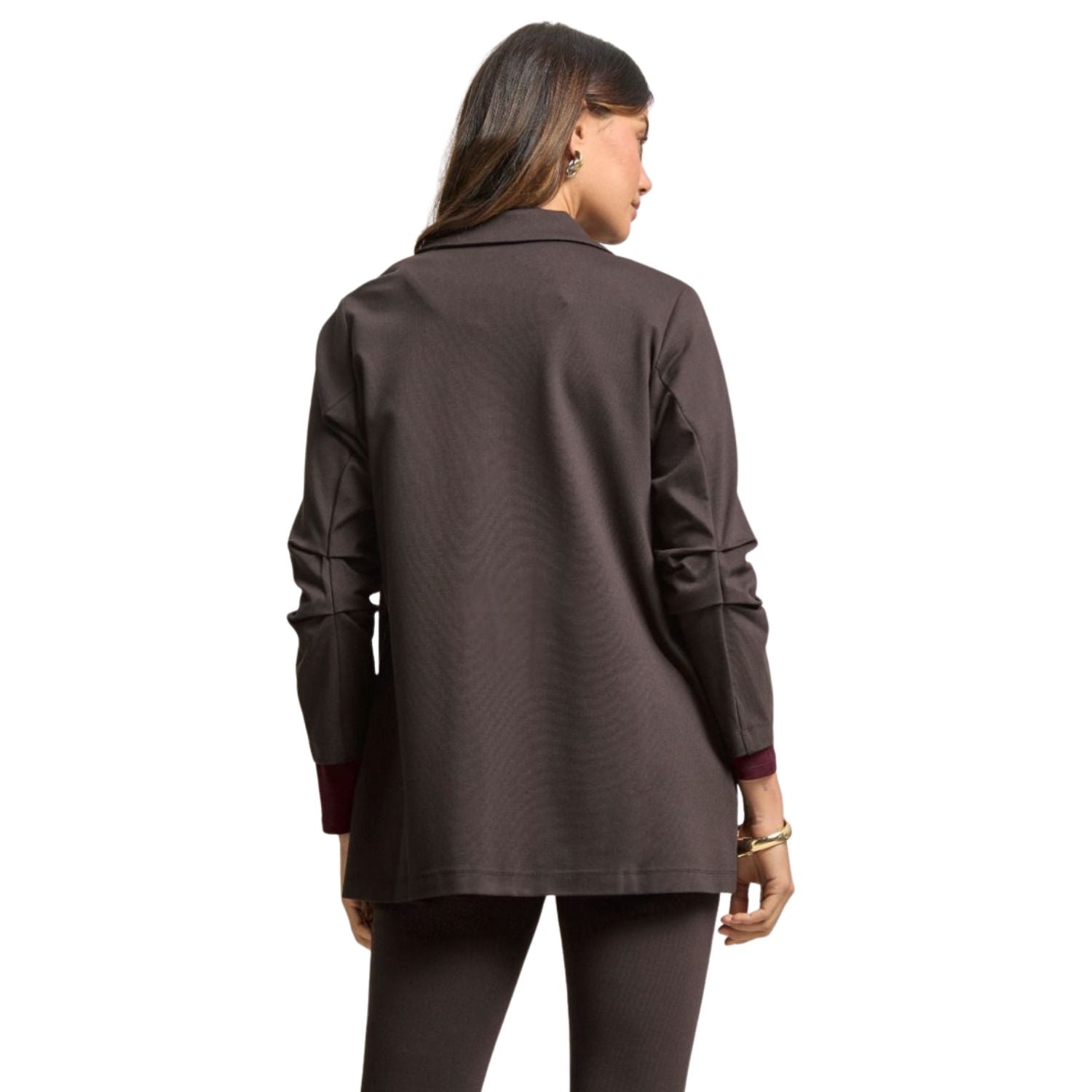 Dear Scarlett Womens 3/4 Ruched Sleeve Magic Blazer, Chocolate
