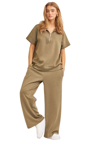 Dear Scarlett Womens Catalina Dolman Sleeve Top with Pants Travel Set, Olive