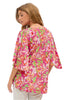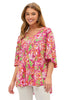 Printed blouse with v neckline with half sleeves. We love the sleeve on this top that is so flattering! Wrinkle free, knit, stretchy.