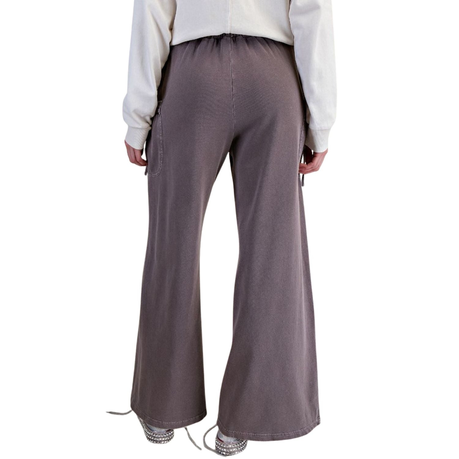 Easel Womens Mineral Washed Terry Knit Wide Leg Pants