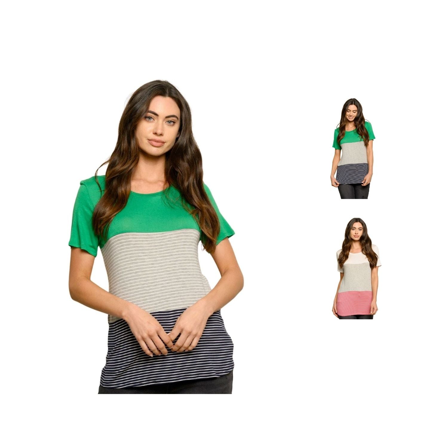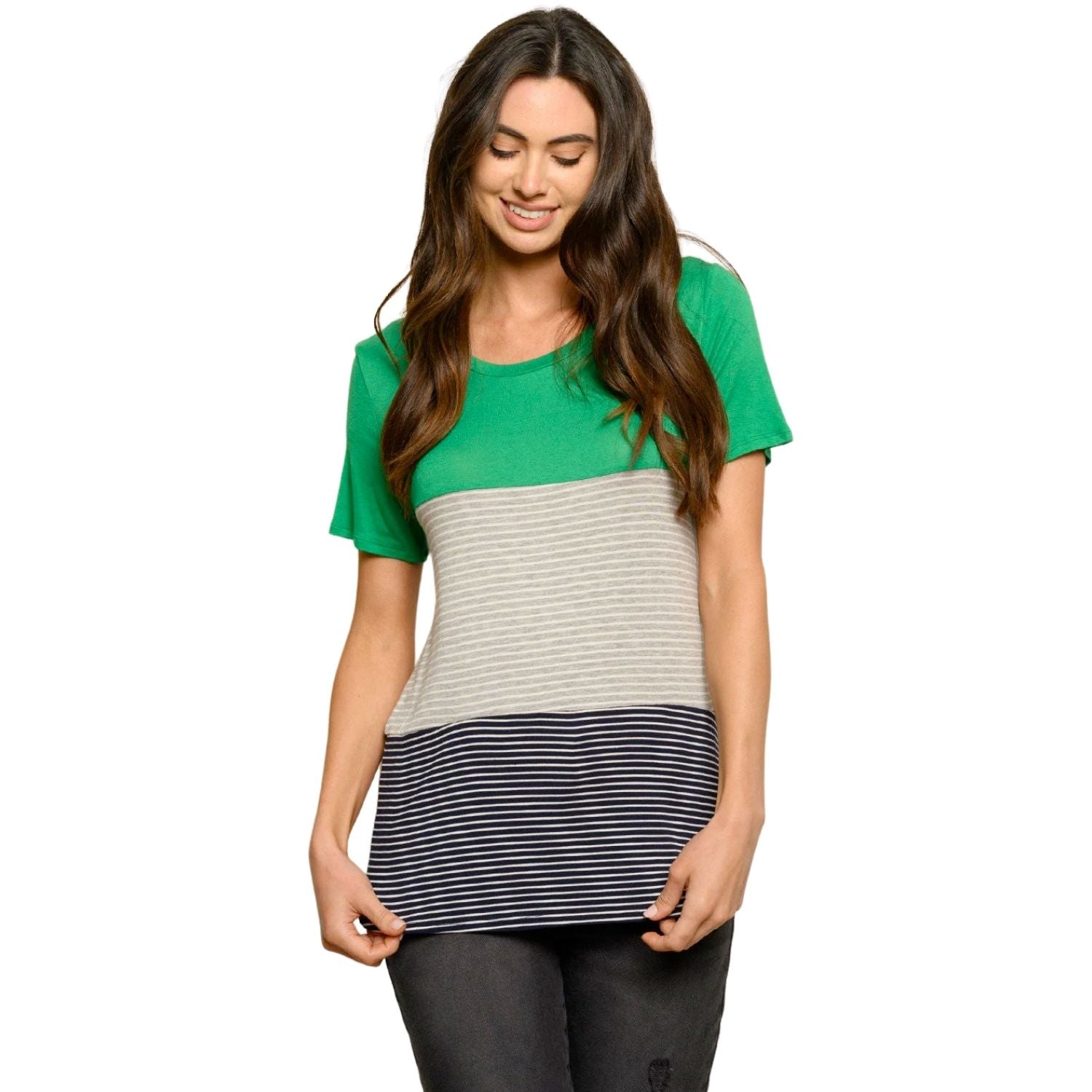 Fantastic Fawn Womens Color Block Stripe Short Sleeve Round Neck Top
