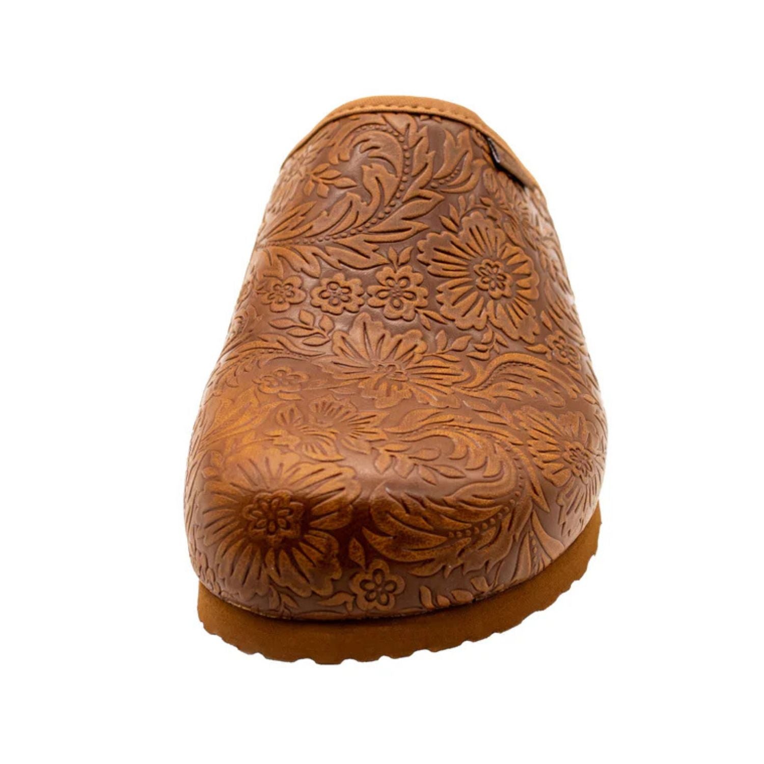 Flojos Womens Sofia Floral Tooled Slip On Mule Clog, Tan Artisan