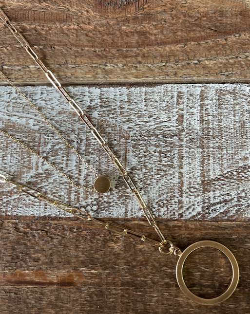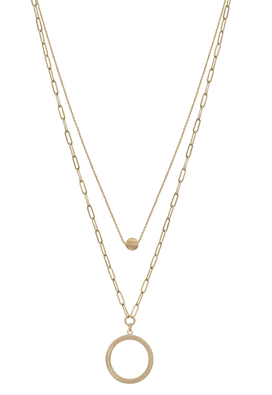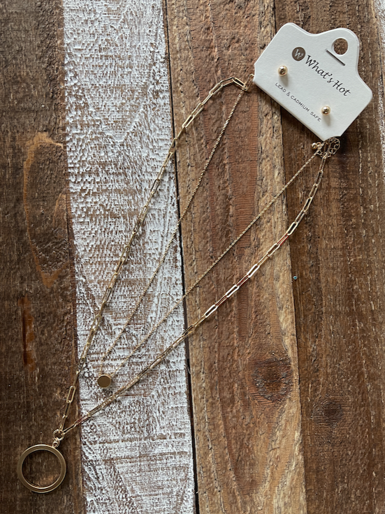 Gold Double Layered Open Circle 17"-19" Necklace & Earrings