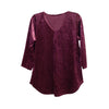 HoneyMe Womens 3/4 Sleeve V-Neck Lightweight Velveteen Top