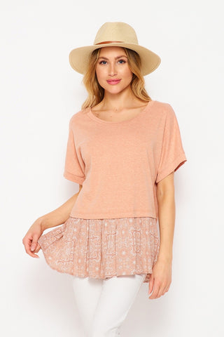 HoneyMe Womens Round Neck Short Sleeve Ruffle Hem Top