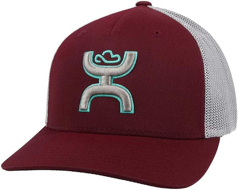 Hooey Mens Coach Flex Fit Mesh Back Baseball Cap Hat, Maroon / Grey