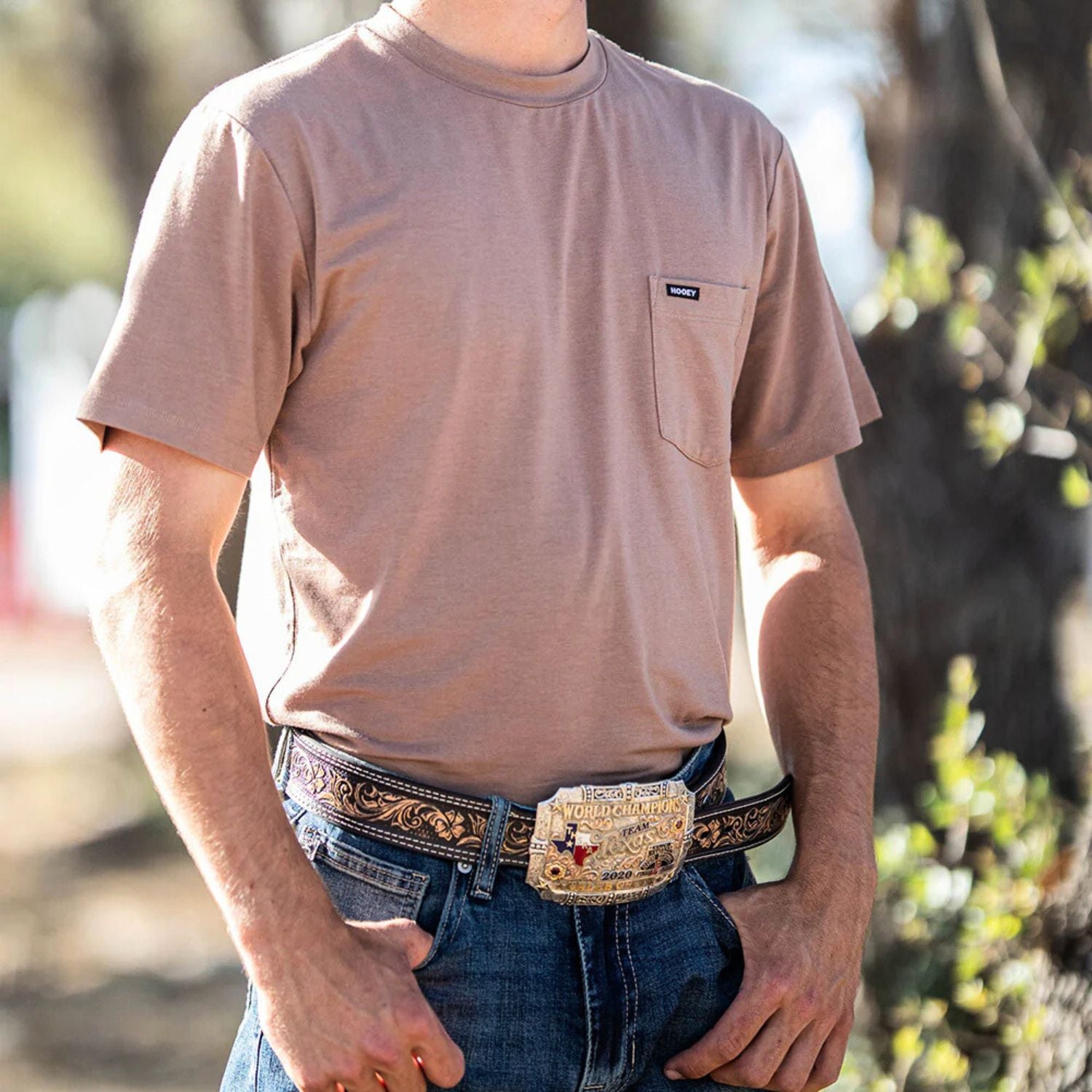 Hooey Mens The San Jose Premium Bamboo Fabric Short Sleeve Pocket T-Shirt, Tan