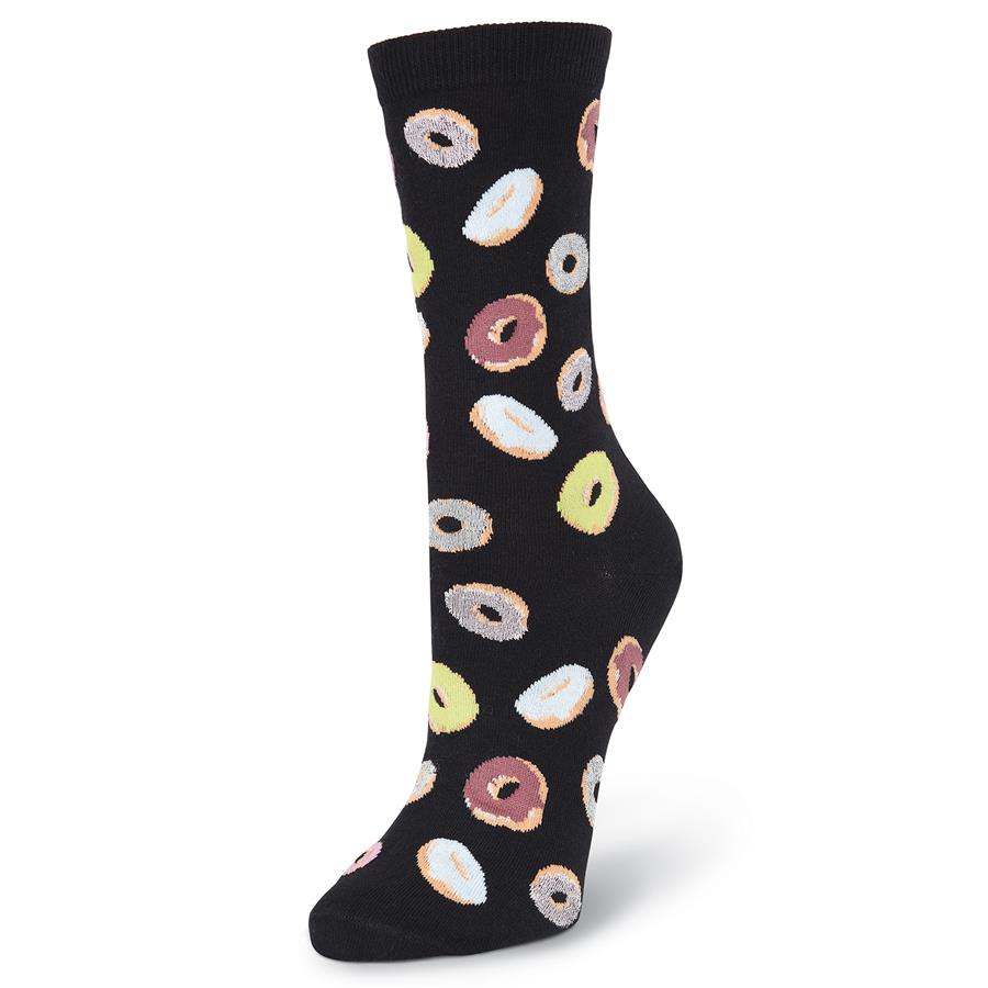 It's time to look delicious in these Donuts Black women's socks. This pair of flat knit black socks for women feature a colorful allover donut print plus ribbed trim. Wear these fun socks and make your morning a little sweeter!