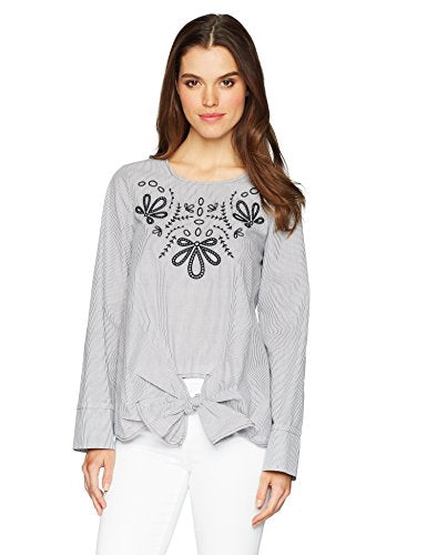 kensie Women's Classic Striped Shirting with Embroidery, Midnight Navy Combo, XL