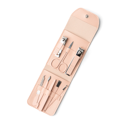 Includes: Small nail clippers, large nail clippers, mini scissors, cuticle trimmer, nail file, nail scraper, cuticle pusher, tweezers