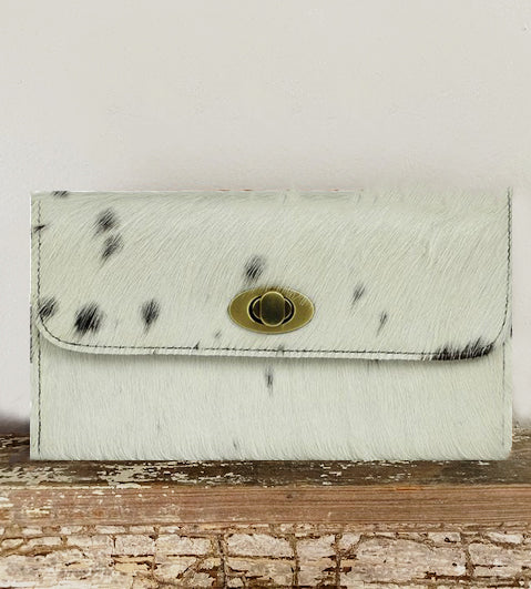 A Leather hair-on crossbody designed with a turn-lock closure front flap, this wallet is sure to be a favorite. With its amazing storage and chic look, this convertible wallet / crossbody purse is irresistible.