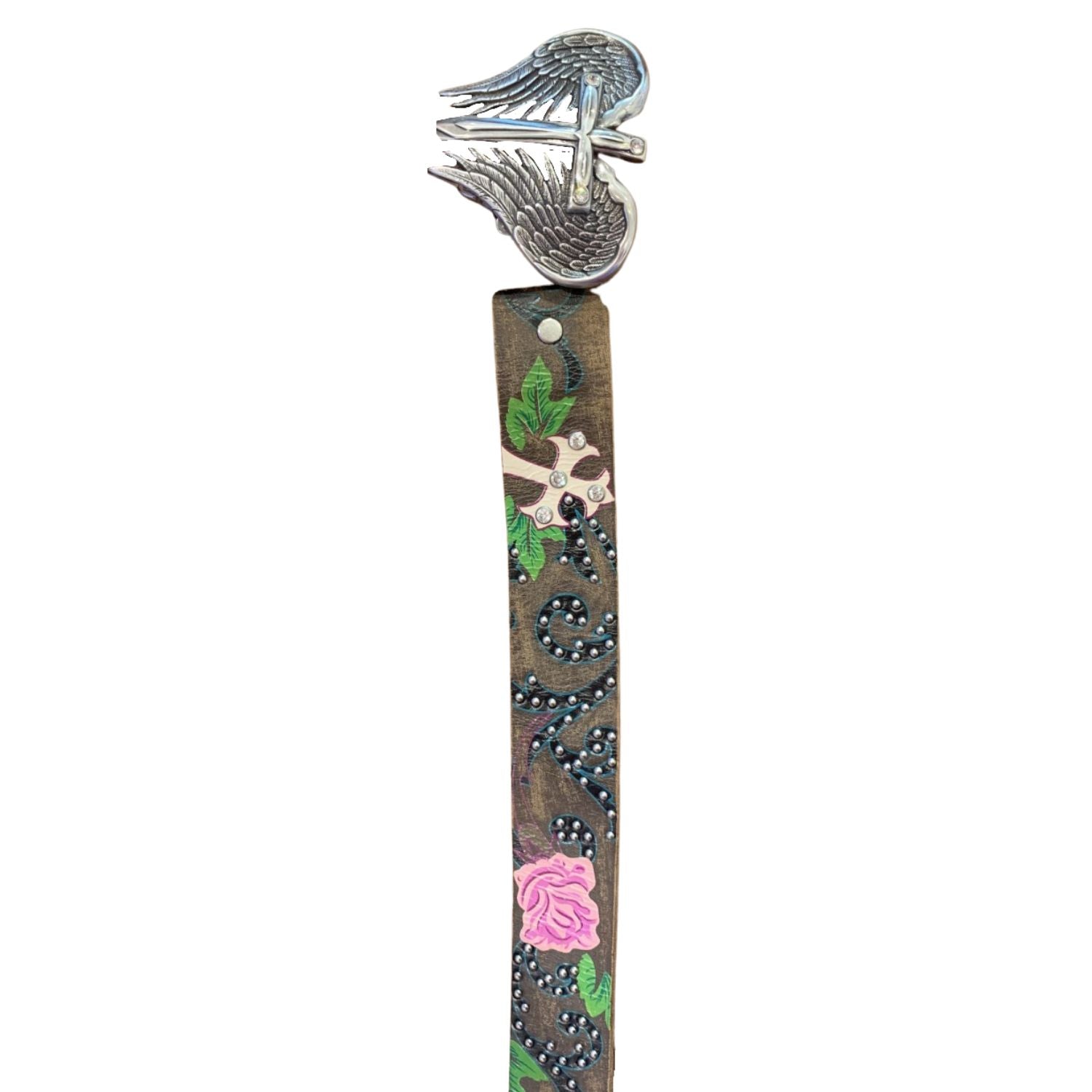 Nocona Womens Brown Belt With Painted Emblems and Studs- Wings and Cross Buckle (Small)