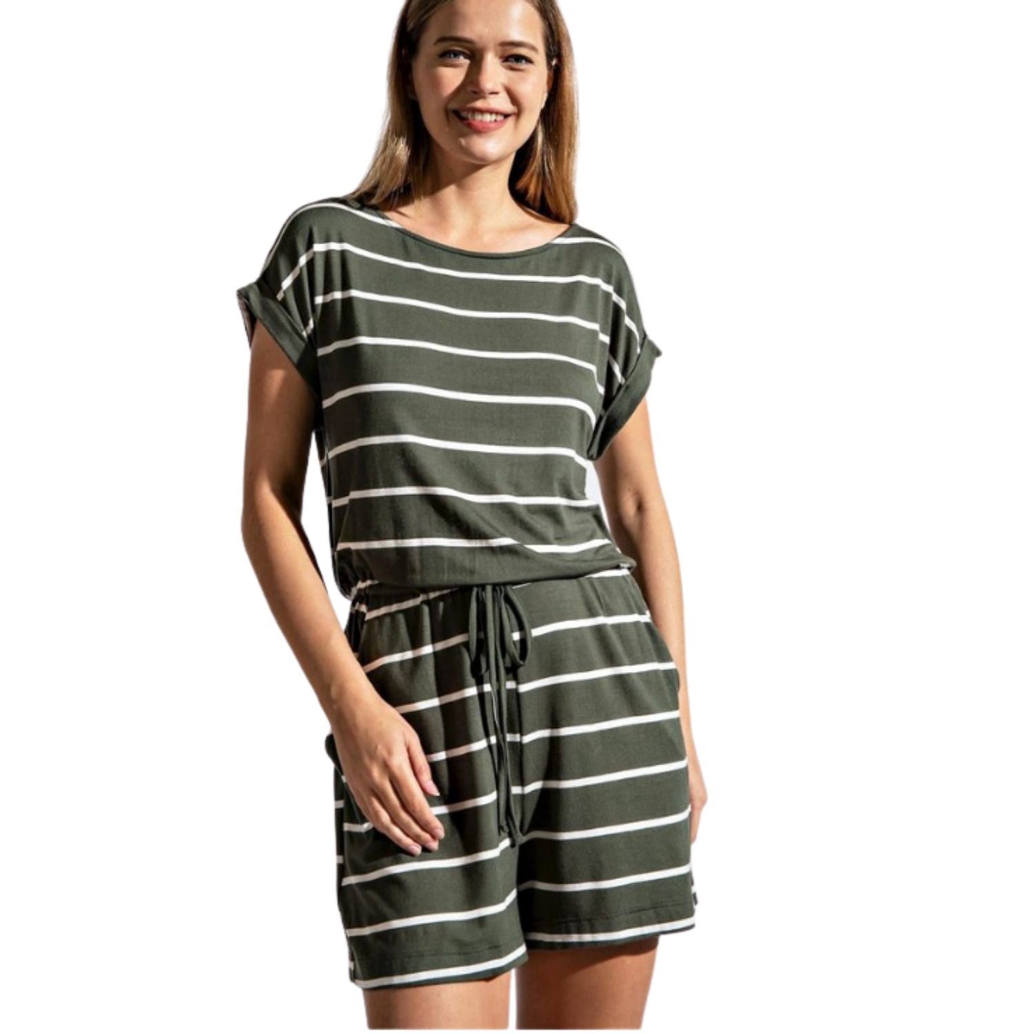 Rae Mode Womens Keyhole Back Short Sleeve Striped Short Jumpsuit