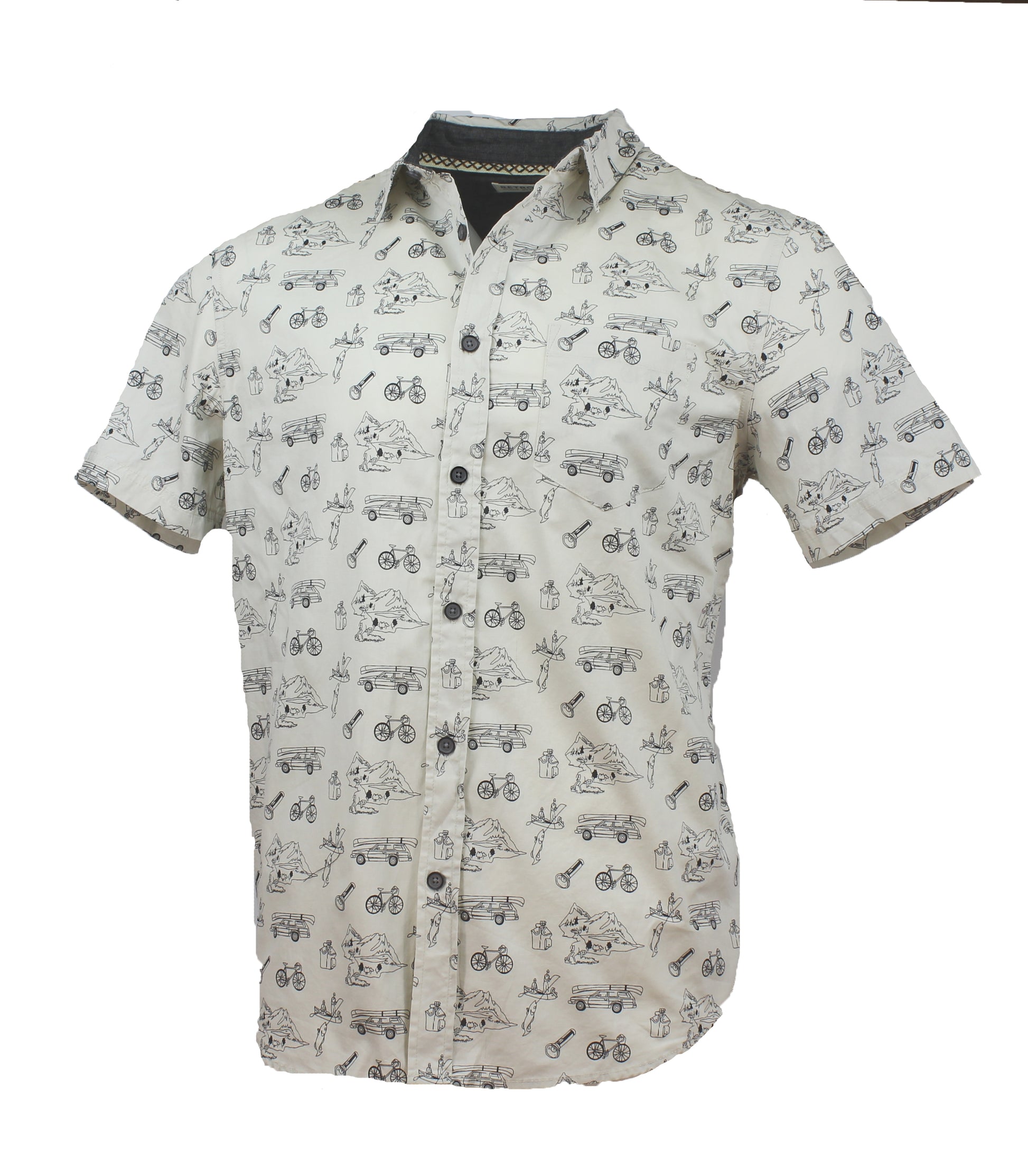 Retrofit Mens Short Sleeve Woven Button Up Shirt
