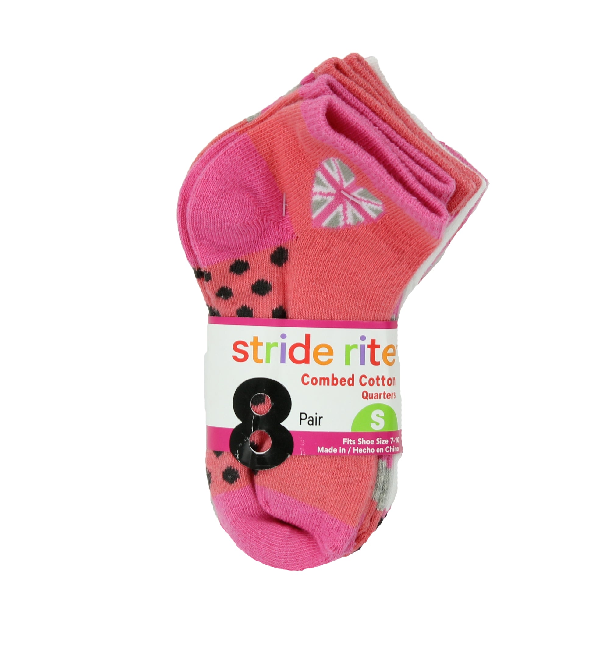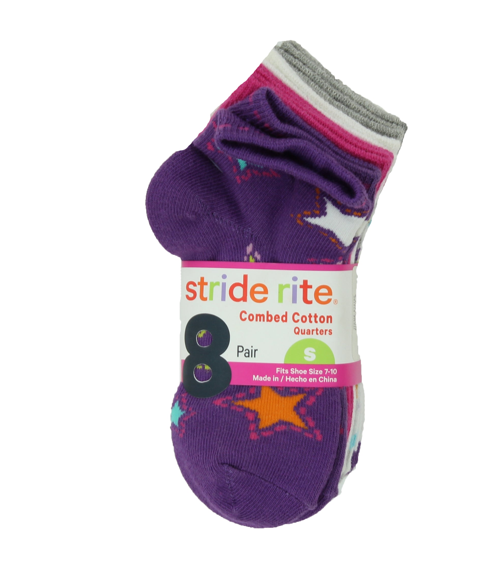 Stride Rite Girls Combed Cotton Quarters Socks-8 Pack