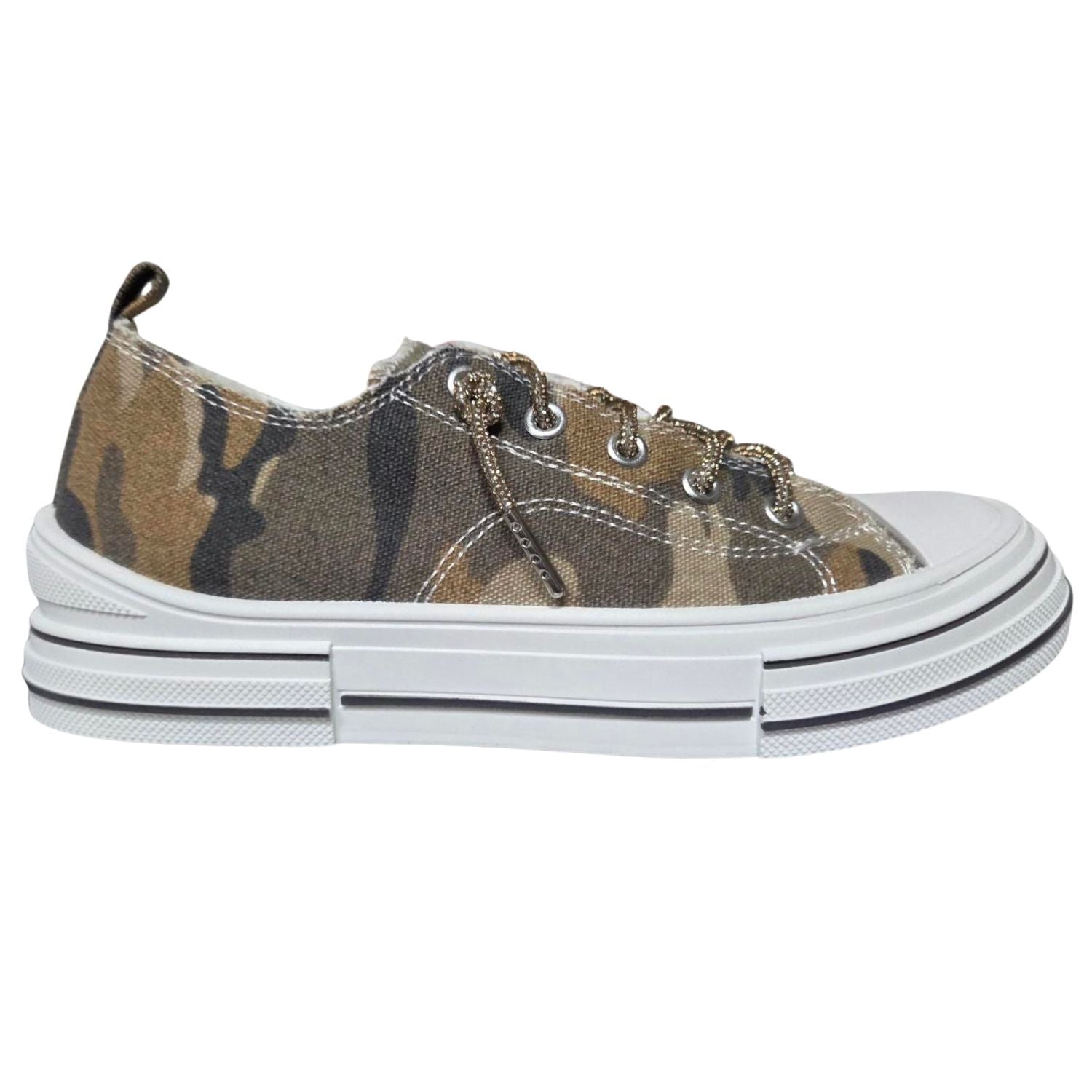 Very G Womens Aman Camo Lace Up Canvas Sneaker, Sand