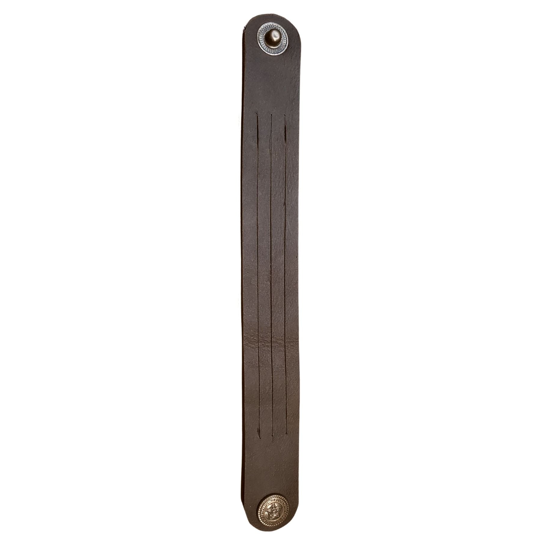This beautiful bracelet features a genuine brown leather band with brass snap closure. It is sure to become a staple in your wardrobe and is a comfortable statement piece for any season.