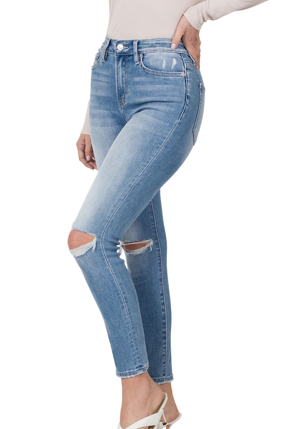 Zenana Womens Distressed Skinny Jeans